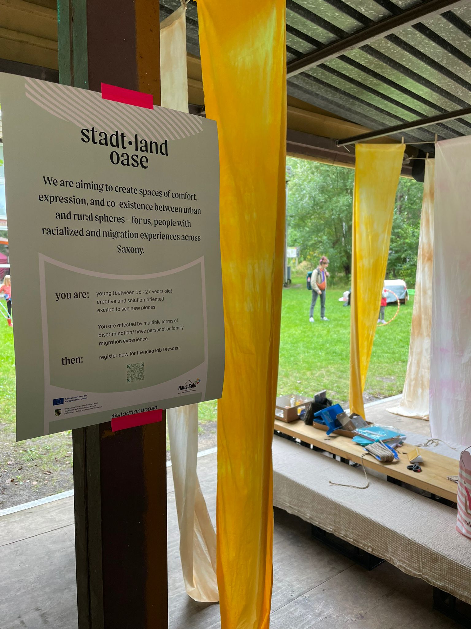 Stadt.Land.Oase ist ein künstlerisches Modellprojekt,das jungen Menschen zwischen 16 und 27 Jahren Raum gibt, ihre Perspektiven in ländlichen Räumen Sachsens sichtbar zu machen. Dabei sprechen wir besonders Menschen mit Fluchterfahrung und Rassismus- sowie Diskriminierungserfahrungen an.