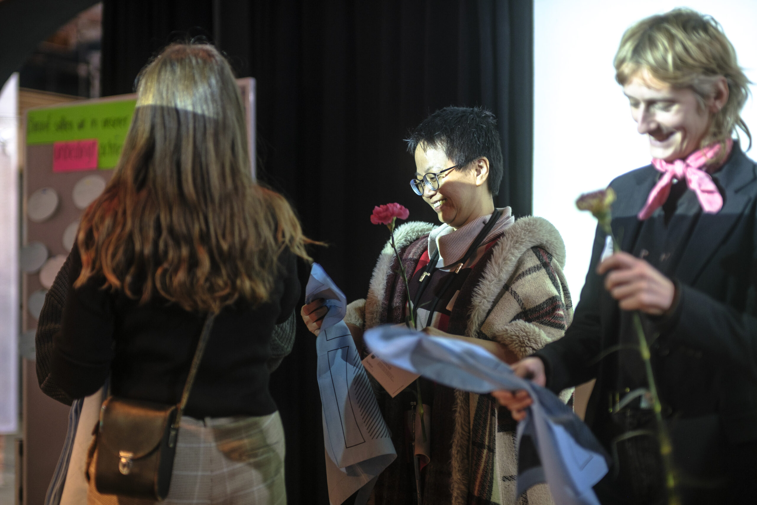 In den Räumlichkeiten des Kulturbahnhofs Chemnitz präsentierten Ideenentwickler*innen aus den Laboren Dresden-Hoyerswerda und Leipzig-Döbeln künstlerische Ergebnisse aus dem ersten Projektjahr.
